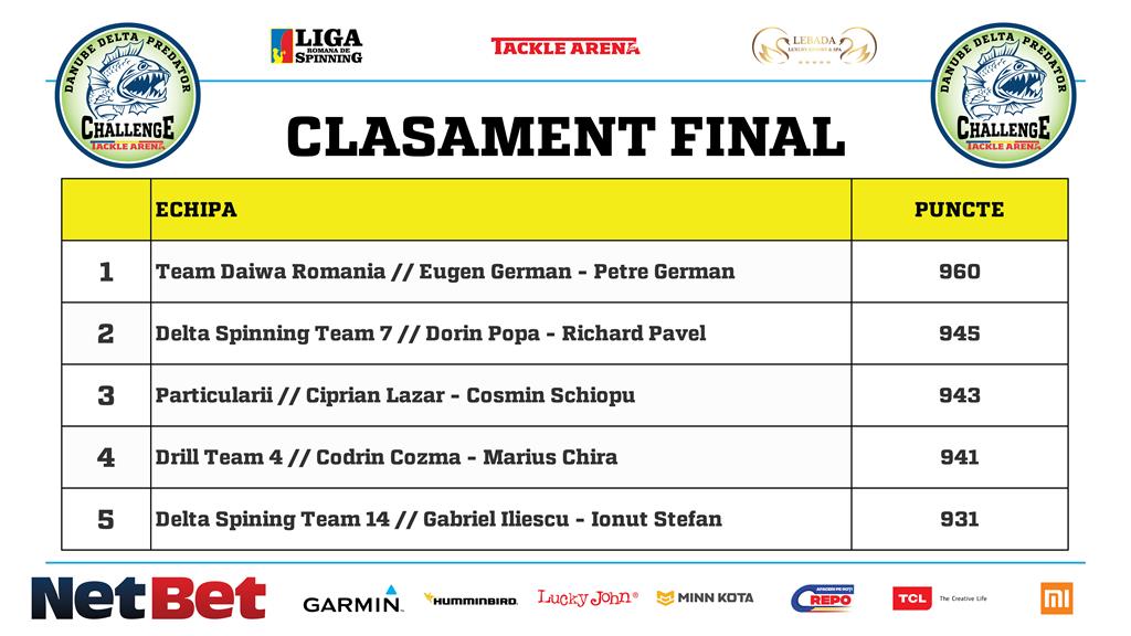 aplicatiei Predator Challenge. Au punctat cei mai mari 10 pesti prinsi in cele