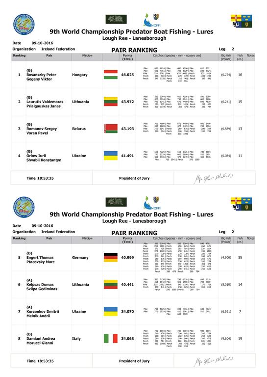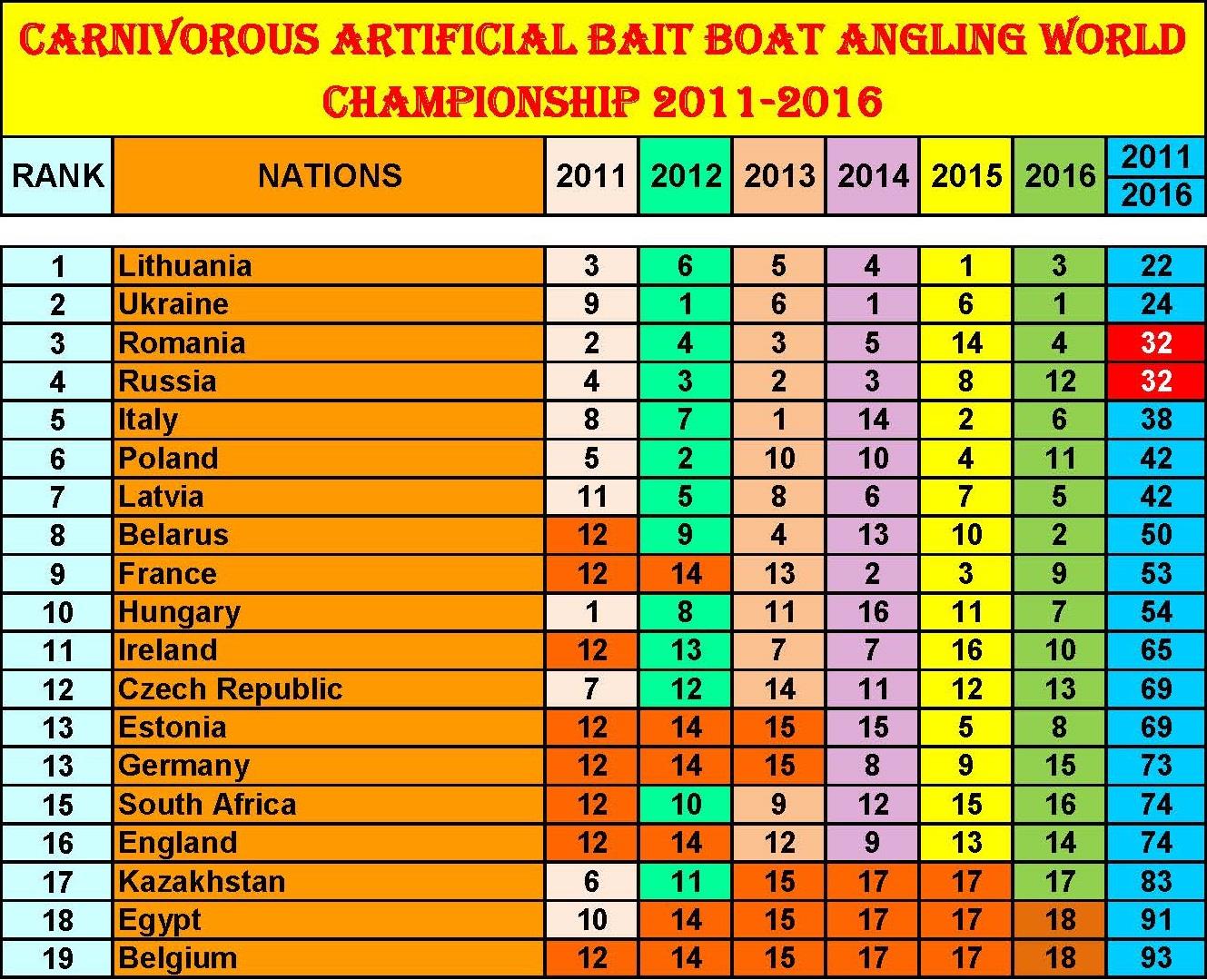 Rezultate finale – WBC 2016, Lough Ree Irlanda