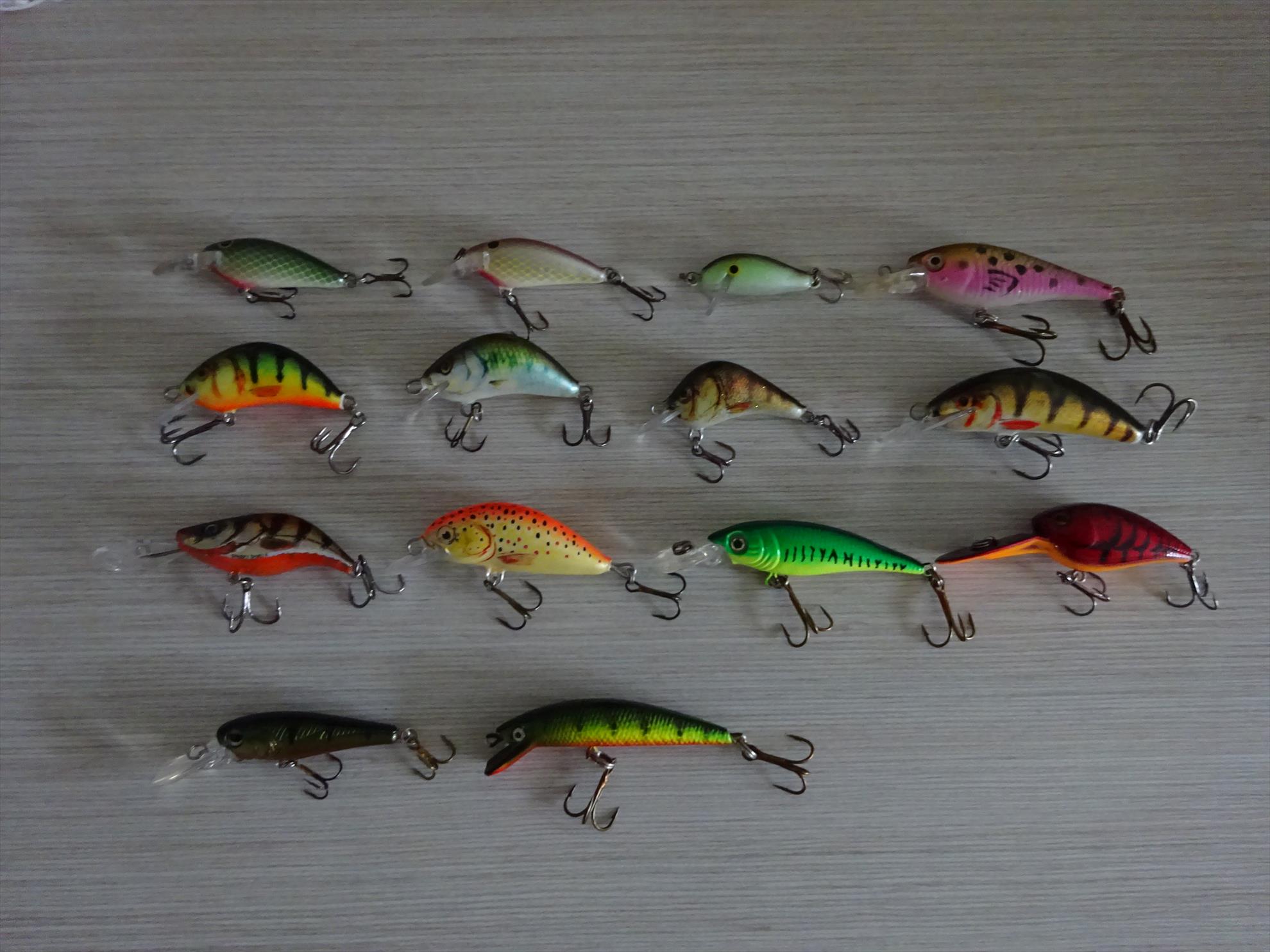 Vand set 14 voblere, dupa cum urmeaza de la stanga la dreapta: 1 si 2, Dady floating 3,5 cm, 3 Dady floating 2 cm,4 Dady sinking 5 cm, 5 si 6 Kenart Hunter floating 4 cm, 7 Kena [...]